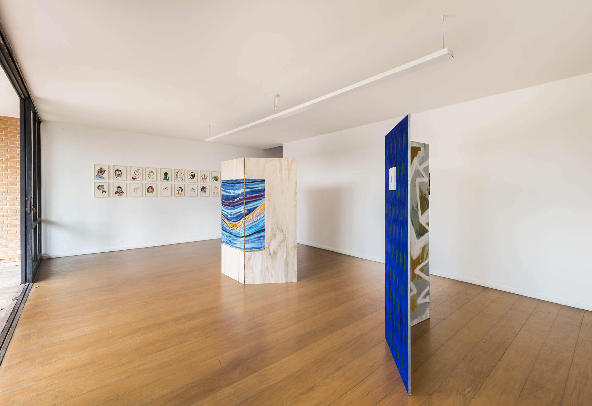 The theater that Ana stages in this exhibition, although starting from a comprehensive and, at the same time, rigorous and inventive rethinking of the tradition of drawing and painting, aspires to the mambembe, when transforming itself at each presentation, when assembling, disassembling and reassembling at her pleasure, by incorporating the elements of the surroundings (sometimes reaching the limit of the readymade) and by pretending simplicity where overflows complexity. It is, therefore, precisely the theater – or, more precisely, the staging – that which seems to connect what at first might seem disparate: the portraits and the folding screens. A theater that lets itself be glimpsed in every detail of the works presented here: in its own processes of constitution (the relation between artist and model), in the dialogue with the great masters (Volpi, Matisse, Klee, etc.) in the overlapping of the small paintings to the screens (making them oscillate between the conditions of autonomous paintings and something like a wallpaper), and even in the mode of exhibition, that is, in the places that the works assume in the space and, consequently, in the interaction with other works. It is a theater in which the roles are never defined precisely or once and for all, they can be rearranged according to the moment.