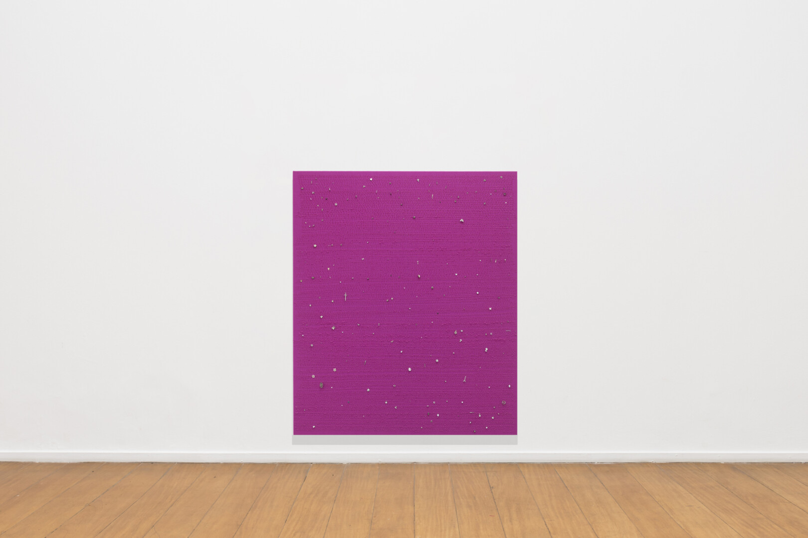 There is also a pseudo-contradiction between a minimalist tradition that the artist adopts and a profusion of details – which indicate an extended temporality – details that point, once again, to an intimate and personal dimension (even if often produced through mass commodities). Finally, it can be argued that there are elements that point, if not to a class dimension, necessarily, to a question of value and artistic gesture. This gesture, in Brandelli’s works, is contaminated by small marks and dirt from the minimal and imprecise work of the hand. The artist does not consider that there is a hierarchy between materials, nor between procedures. In the end, what does it mean to elevate cardboard (perhaps the most mundane of materials) to a work of art with such a simple gesture? The artist’s touch, literally the “little pixie dust” that accumulates in the folds of the cardboard, is all that is needed for the condition of this material to completely transform. It feels a bit like carnival. Momentarily the lowest of the low fantasizes – both in the sense of his clothing and in the imaginative connotation, of projection – as the most exuberant member of royalty. Maybe this is what the teenager projects in her room while listening to Destiny’s Child and organizing her jewelry box and other trinkets.