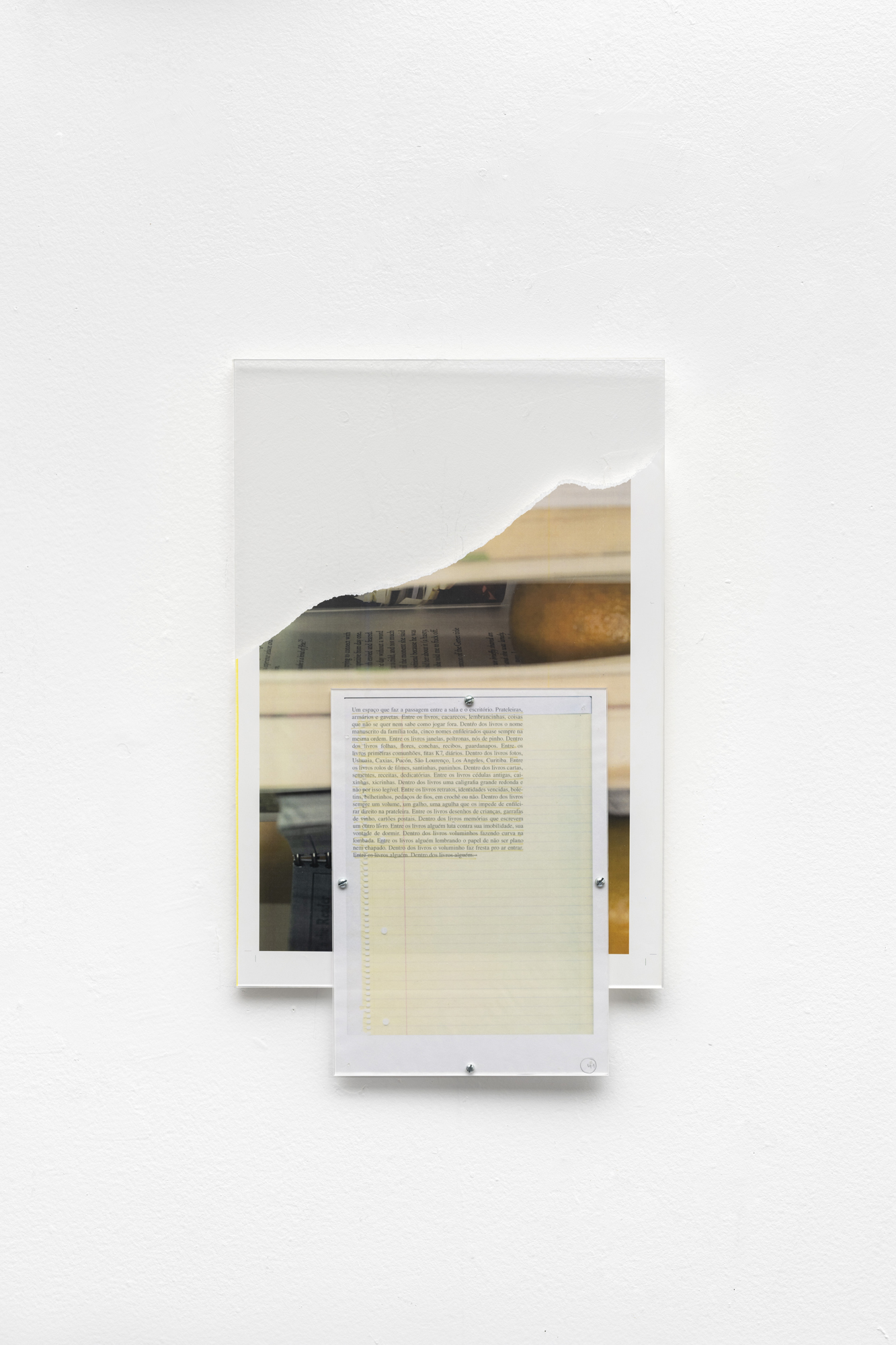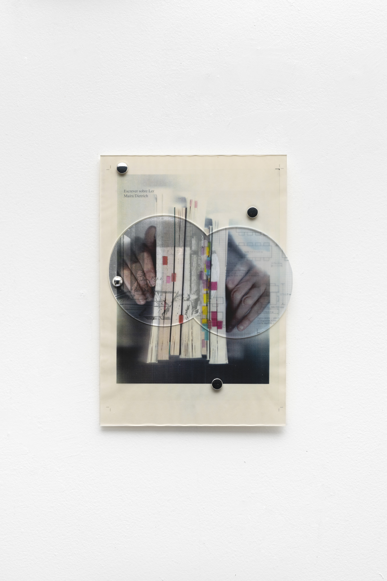 auroras is pleased to present Writing about Reading by Maíra Dietrich in the library space. The collages in the series talk about the experience of writing and reading, through reports, drawings and observations about the figure of the reader and the library space. Based on the artist’s interest in thinking about language as a physical phenomenon, the pages of text and image merge, each collage is formed by photographs, printed texts, drawings and objects that write in their superimposition.