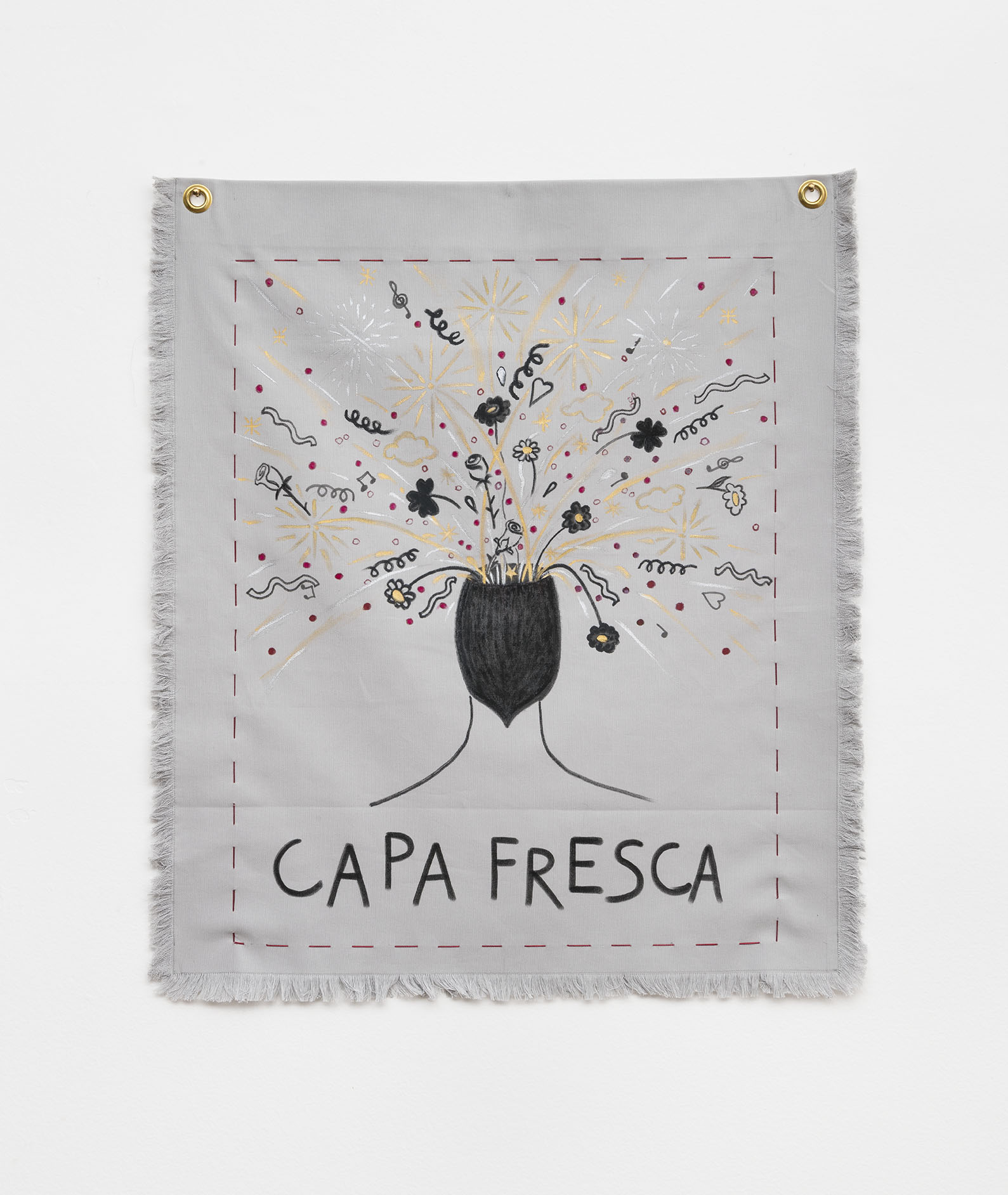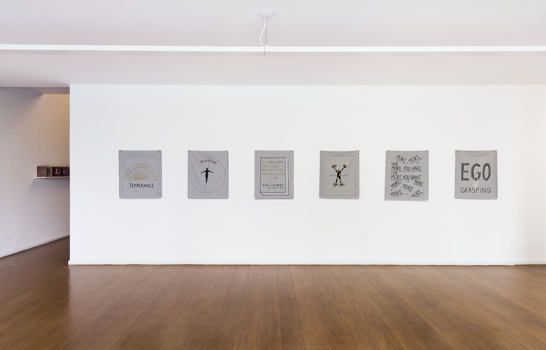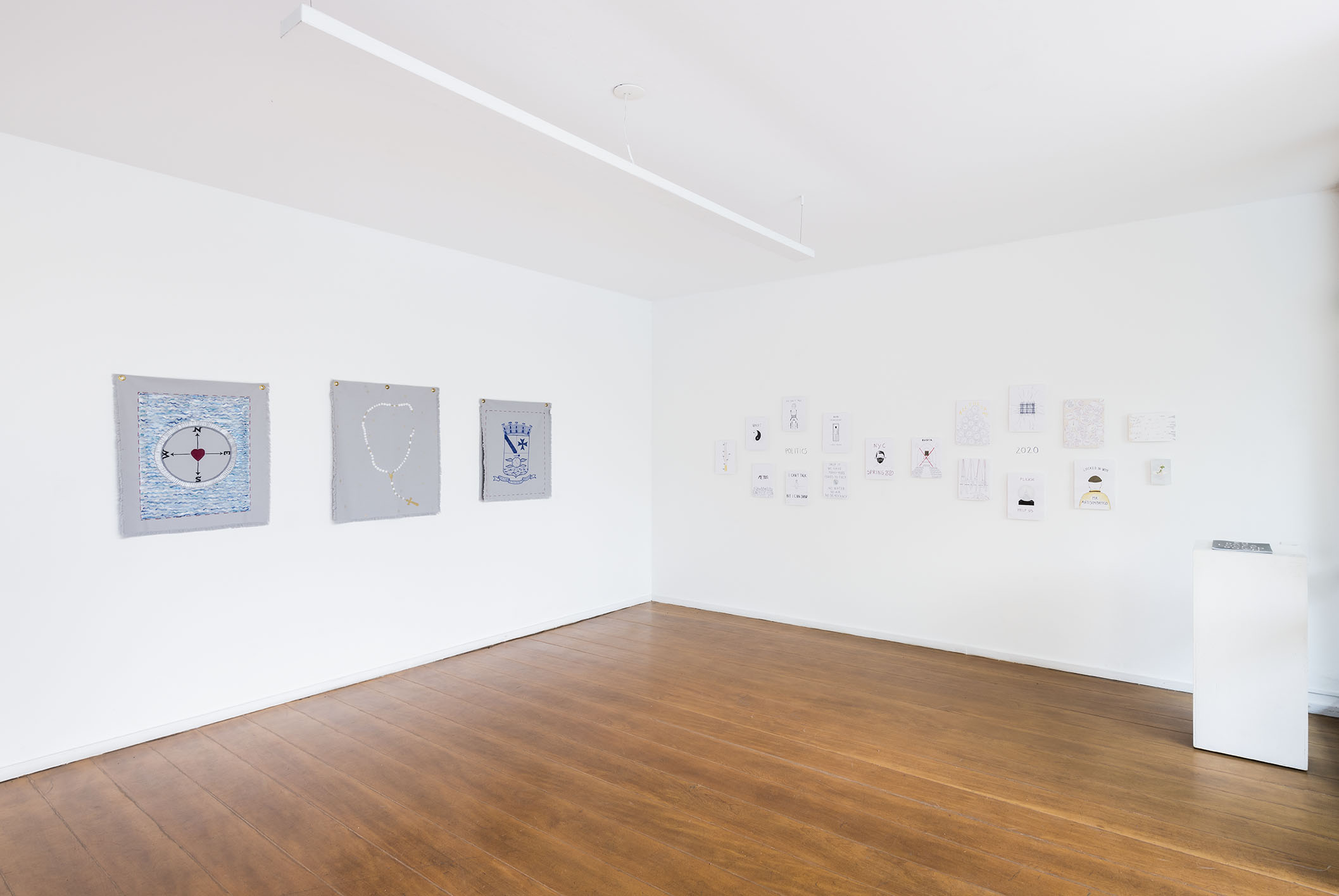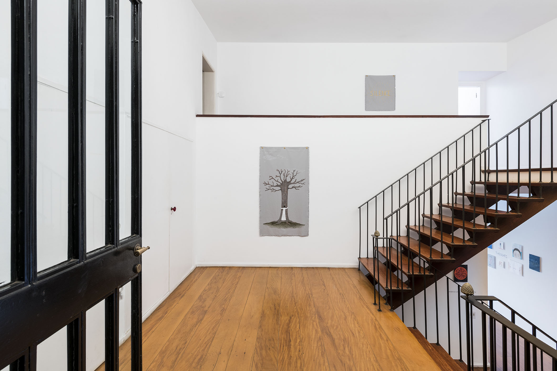 O espaço principal é dedicado a uma série de desenhos em papel e tecido publicados recentemente em seu livro “A Clear Mind” [Uma Mente Clara]. O livro é uma chave e um mapa da eclética experiência de vida de Alba Clemente e está dividido em cinco partes: memórias, pensamentos, emoções, política e fantasias. Todos esses temas estão representados em seus desenhos espirituosos e surpreendentes.