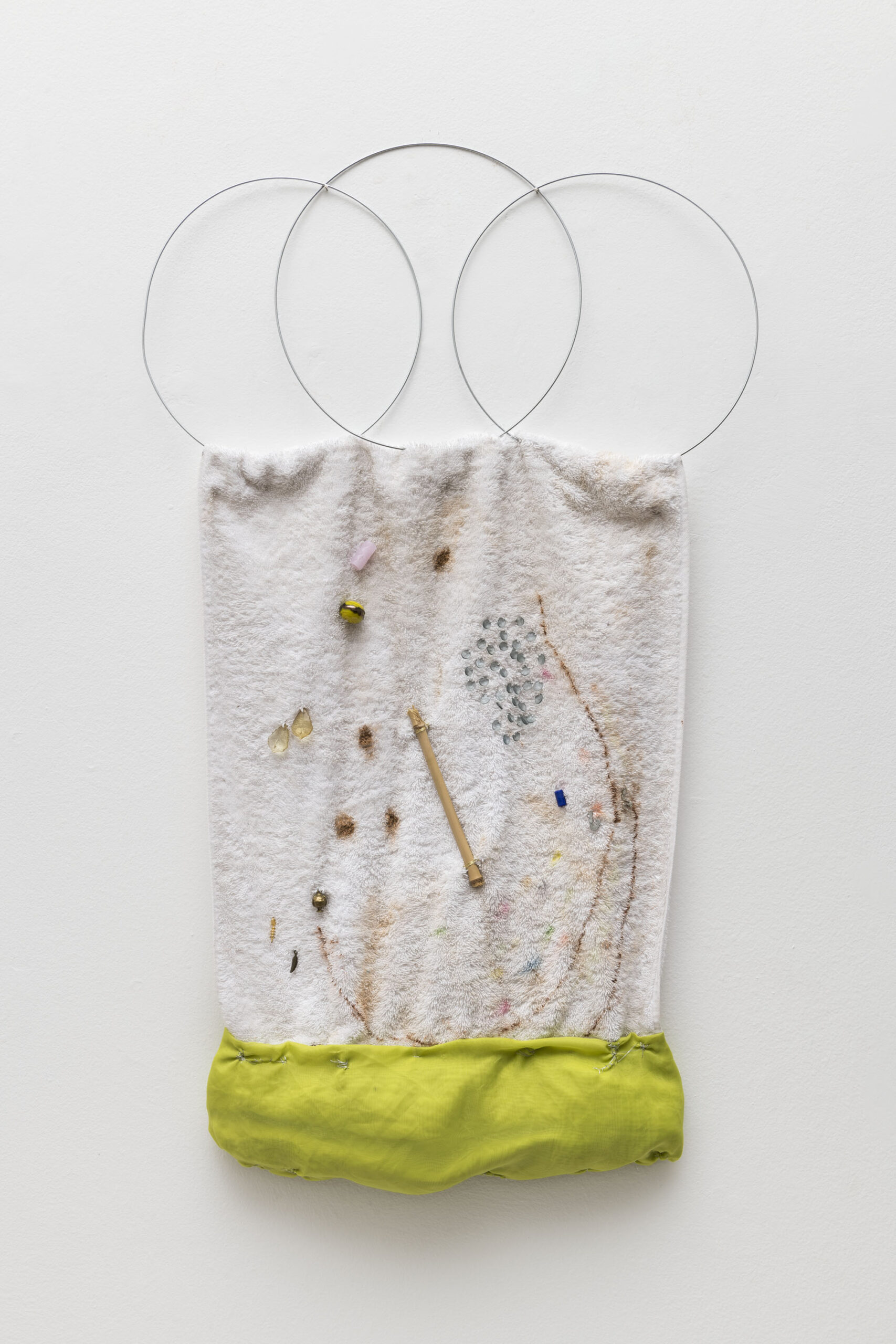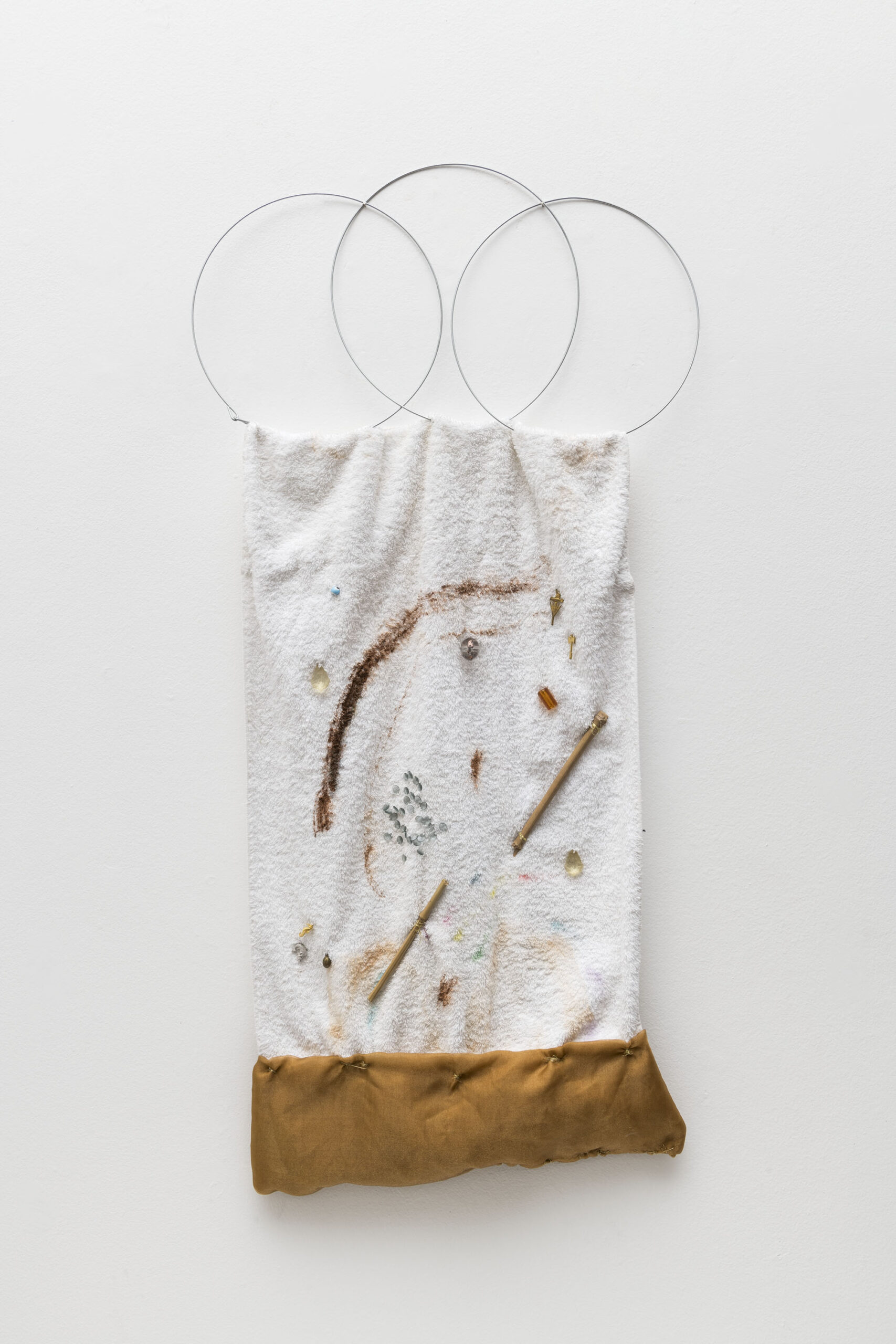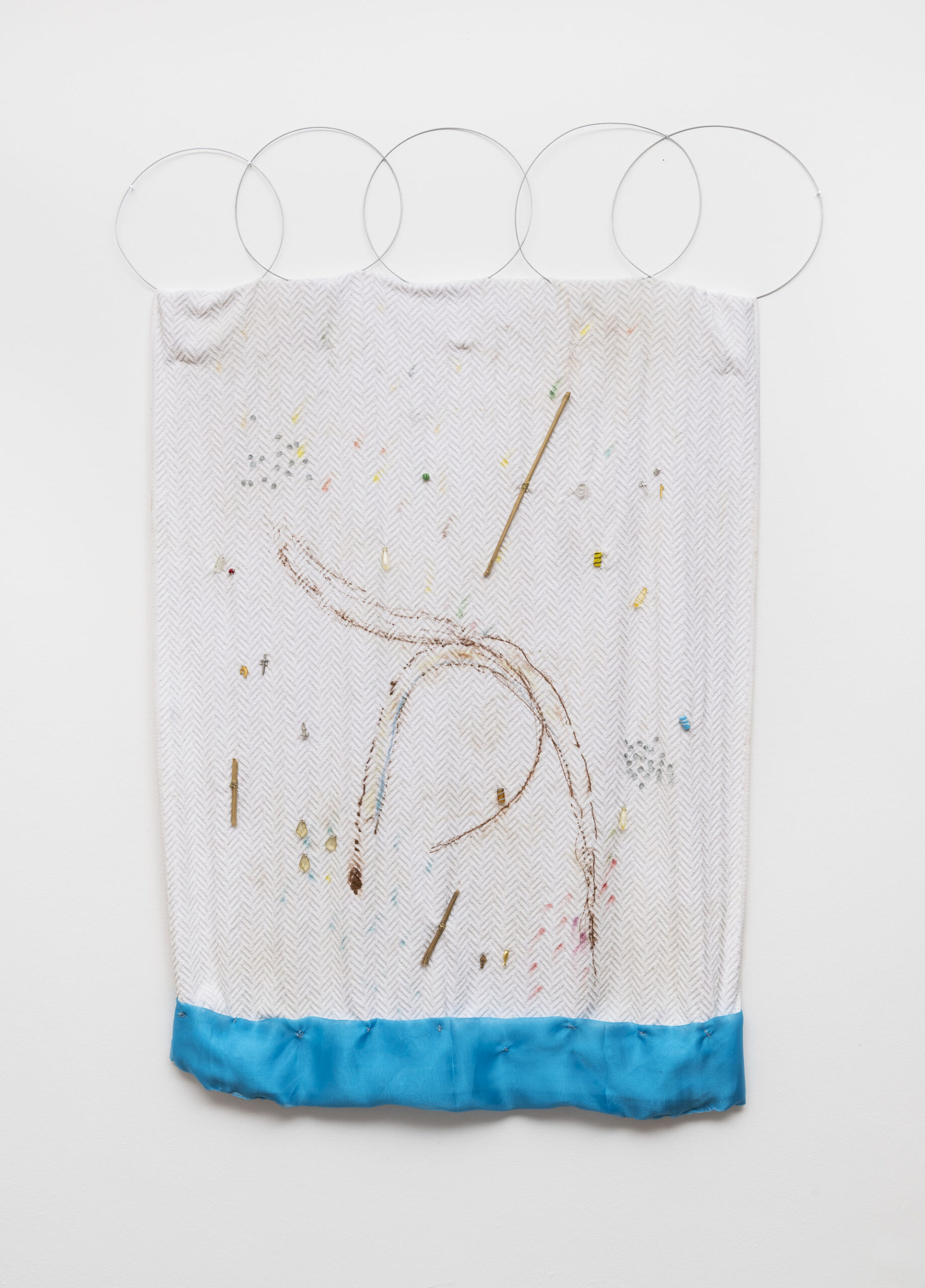 A poética que Leonilson desenvolveu em pouco mais de uma década, atravessando os anos oitenta e o começo da década seguinte, tomou também diferentes tipos de suportes. Desde desenhos sobre papel, ao uso de lonas soltas, telas e tecidos. Sobre eles, Leonilson recorrentemente escolhe uma disposição moderada das inscrições, resultando em pequenas figurações solitárias ou com alguns poucos companheiros. Essas figuras e espaços desenhados de alguma maneira ativam o suporte, fazendo com que os próprios “vazios” que envolvem os pequenos desenhos adquiram certa materialidade.