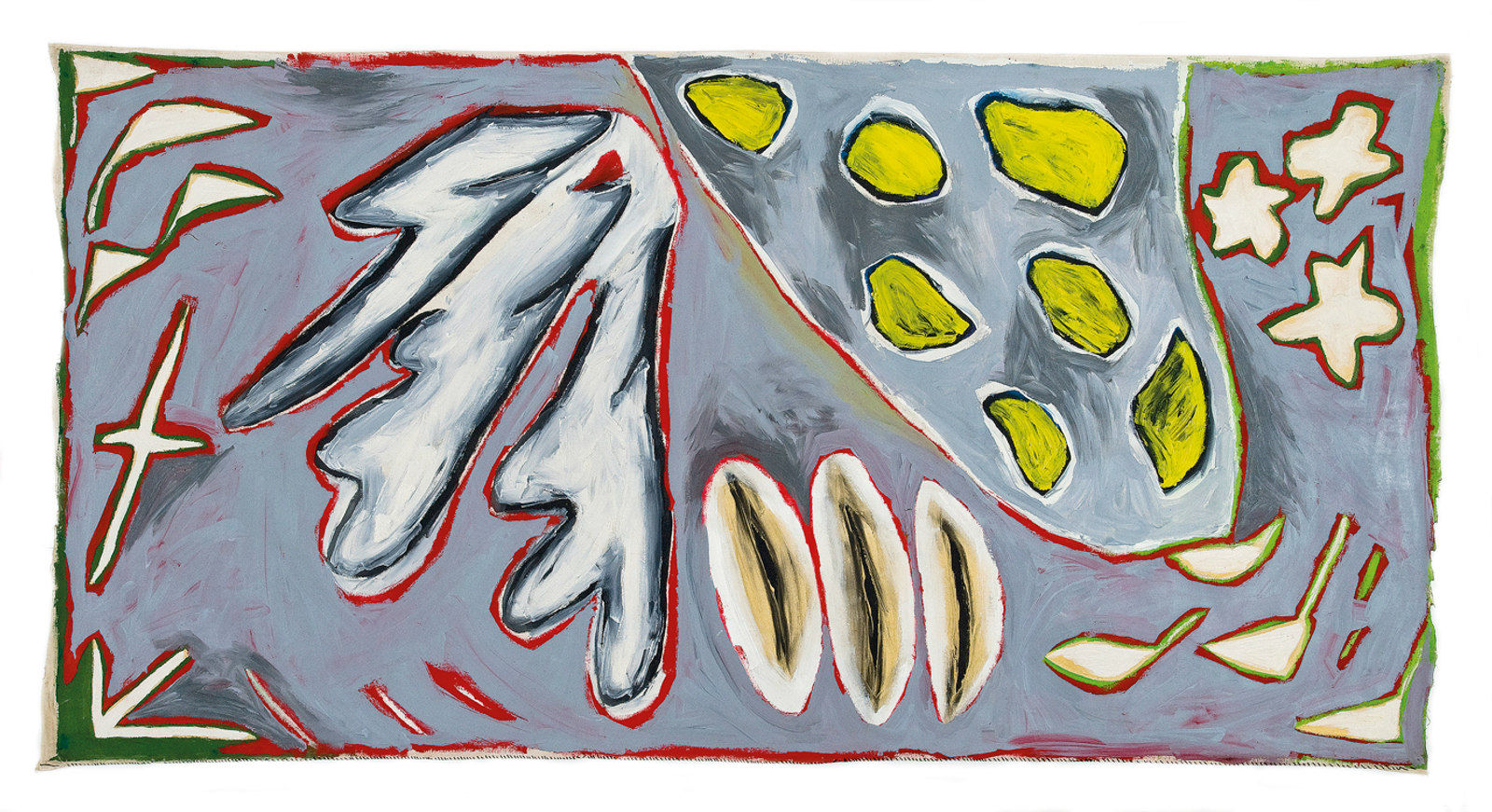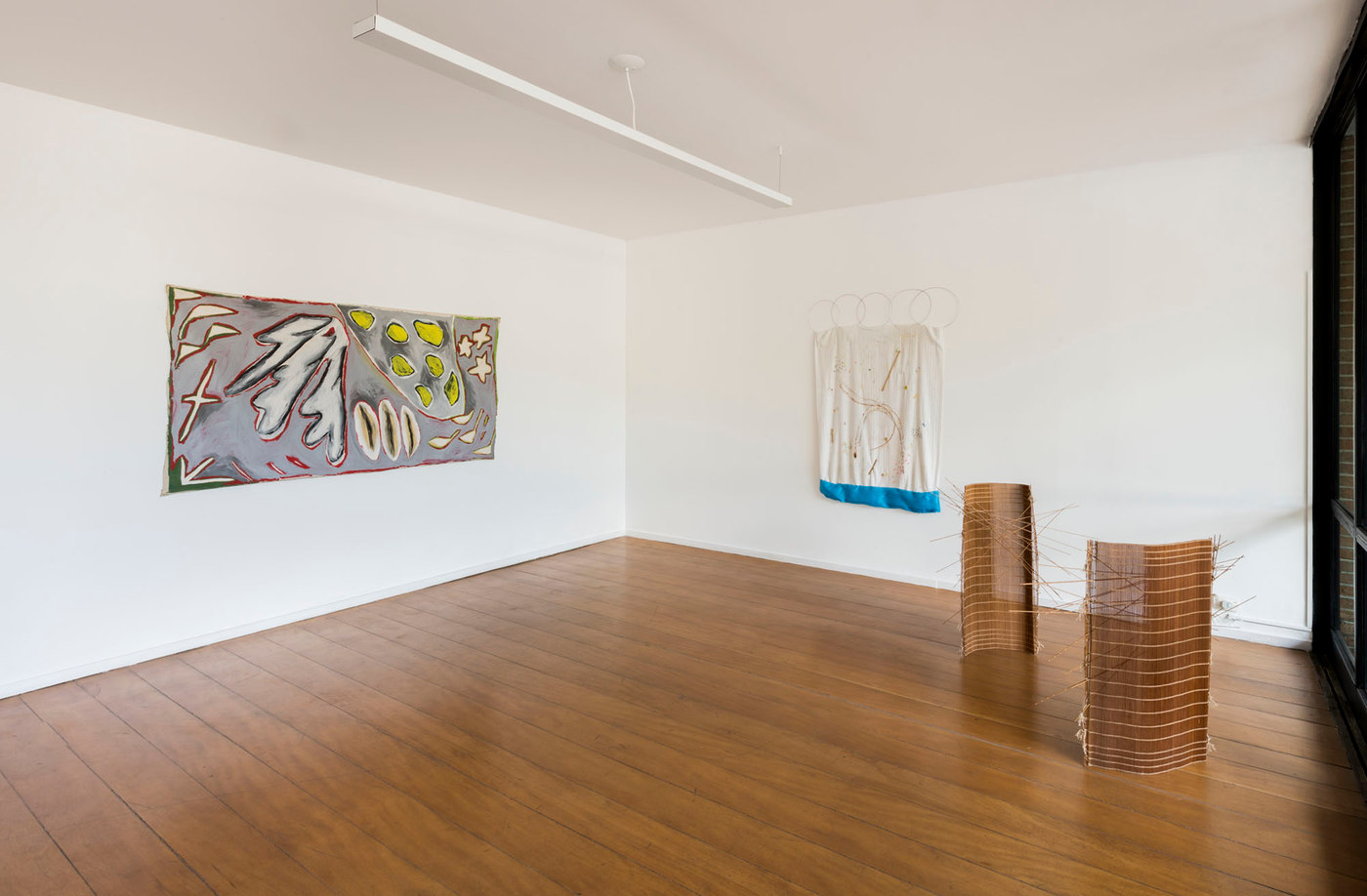 O auroras e a Sé têm o prazer de apresentar uma exposição com obras de Tadáskía e de Leonilson. Em livre diálogo, desenhos e pinturas compartilham gestos simbólicos de uma falta de decoro em relação aos limites retangulares que tradicionalmente moldou obras “bidimensionais”. As formas que ocupam esses espaços irregulares se mantêm também no limite entre uma figuração sugestiva – também pelos títulos – e formas orgânicas mais ou menos abstratas.